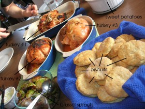 This was our first Thanksgiving without family. Our friend, Renee, came over and joined us for the holiday. I couldn’t find a small turkey by the time that we had decided to cook at home, so I opted for 3 stuffed turkey breasts which turned out to be way too much (total of 9 pounds — oops!)!! One was stuffed with cranberry pecan stuffing, one had an herb and butter stuffing (we actually didn’t even carve into that one!), and then one had a blue cheese and asparagus stuffing. They were from Whole Foods and I think we did a pretty good job of roasting them. I made a sweet potato casserole, biscuits, and brussel sprouts for sides and then we had chocolate chip cookies for dessert. Oh and I made us some cinnamon rolls for breakfast this morning (from scratch!). It was a low-key, relaxed, and fun time. Afterwards, Renee and I did some crafting while Tony passed out on the couch.