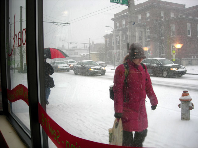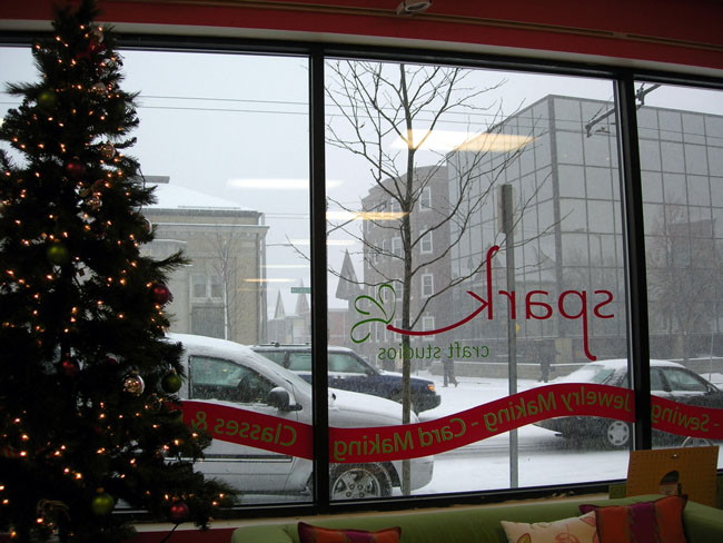 This is what it looks like from inside the shop. We’re closing early at 4. Thank goodness. Then I can trek home in my big snow boots through all this lovely white stuff.