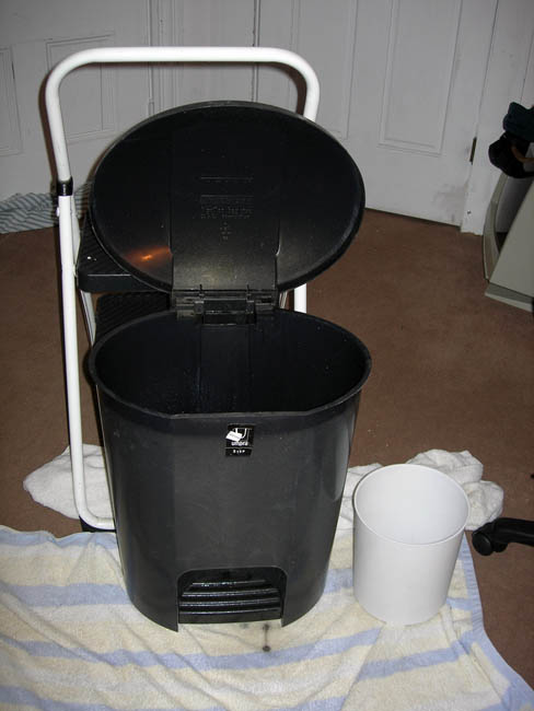 … it certainly poured in our apartment! We had a big storm come through New England last Sunday, December 16th and unfortunately the what we thought was repaired ceiling in our computer room began leaking. A lot. Hence the large trash bucket. Luckily we were home and heard it start (not like one time when we were at work and came home to a super saturated carpet), so we caught a lot of it with buckets and towels.