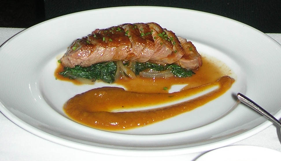 Tony had the rice smoked duck breast with sautéed spinach and squash puree. It was really good – probably the best duck he has ever had. It was that good.