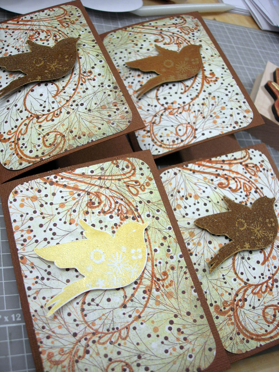 I bought this new bird stamp at Ink About It earlier this week and had fun making these little cards. I especially like how it turned out with the Galaxy Gold Brilliance ink pad on plain white paper.