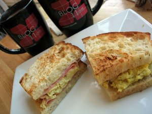 Hmmm … that’s funny … this is another post about Bloc 11 Cafe. Just a real quick one. Tony and I went over there for breakfast before heading over to Harvard Square for the May Fair. We both enjoyed an egg sandwich with prosciutto. Yum! With melted cheese on rosemary foccacia bread. Mmmm!