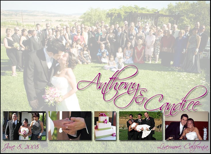So the wedding. The wedding. Wow. What a fun time! Occasionally stressful, but fun! We are so thankful that so many of our family members and friends were able to fly out to join us in California. We were blessed with beautiful weather, our guests had fun trekking around Northern California, the local wineries sold cases thanks to us (ha ha ha), and we had a fabulous time celebrating. If you haven’t done so already, check out our photos on Shutterfly. I’ve posted photos from family and friends, plus our honeymoon photos, and a couple of little videos. We haven’t developed and uploaded the disposeable camera photos yet, so there are a lot more to come.