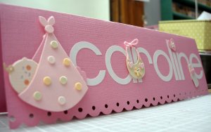 I made this card to go with the baby gift. I created the scalloped edge with the new Fiskars punch I bought at AC Moore a couple of weeks ago.