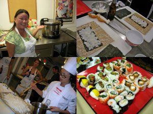 Tony and I took a sushi making class at the Cambridge School of Culinary Arts on Friday night. I had taken two French cooking classes there and wanted him to see what it was like — plus we LOVE sushi — so I convinced him to take the class with me. It was a lot more stressful than he thought it would be, but we still managed to have a fun time learning various things.