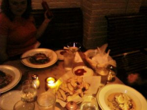 I think overall we had a nice experience at The Beehive. The food was delicious and so was our wine, but it was a tiny bit pricy. My main complaint was that the pate had nuts and raisins in it but there was no warning on the menu, etc. I think the restaurant really should consider warning customers about the nuts in them because of food allergy issues. Also because the pate comes nicely wrapped in saran wrap and then in a pretty paper that is a map of France with different regions outlined by the type of cheese they make. It would be such a waste for someone with a nut allergy to get it, open it up, and then have to send it back. Oh and we couldn’t tell if it was nuts inside until the guys tried some for me. So. You know. I think restaurants need to label those types of things clearer.