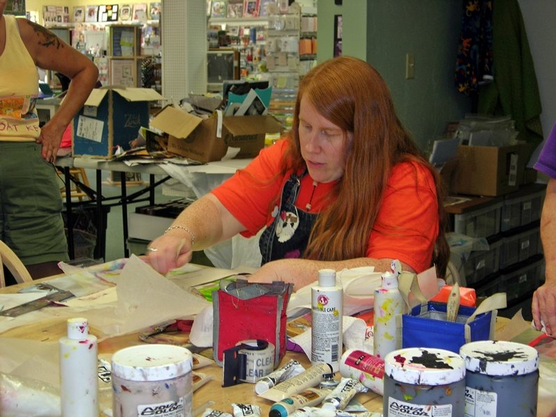 Okay, so then I’m jumping from one Saturday to another. Renee and I took a class at Ink About It yesterday called “My Favorite Things”. It was taught by a mixed media artist, Kelly Kilmer, who is a friend of our friend Marissa.