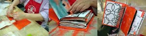 Renee made hers into a “love/hate” book where she’s going to add photos of things she loves and hates. I think it’s hilarious and such a cool idea, maybe I’ll make my next mixed media book with that theme. She used an orange, turquoise, black, and white color theme for her book and it turned out so neat.