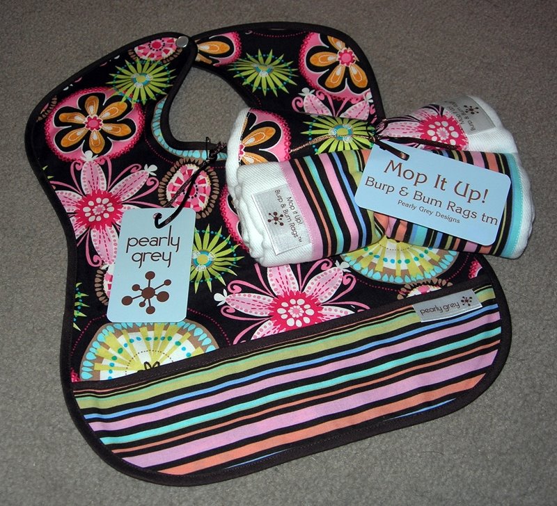 In preparation for her arrival, I bought this adorable bib and a set of “burp and bum rags” from PearlGrey on Etsy. The title of her rags just cracked me up! Aren’t they cute??!