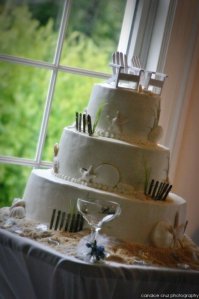 Don’t have time to post all the photos yet, but couldn’t resist sharing a couple of photos of their cake. They went with a seaside beachy theme and the cake turned out awesome!