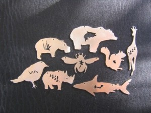 One of the pieces that I got was a “chubby bird” necklace from Kelly of Tulips to Kiss. It’s so fricken cute! She has a whole series of various animals with little bits of food carved out of their bellies called the “Ate” series — get it? The food is what they ate – too clever!