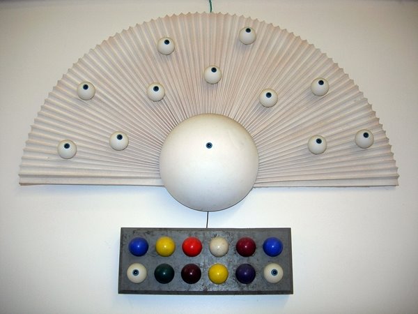 We walked around to check out the other artists and came across this interesting piece of art on a wall. It appears to be eyeballs made out of ping pong balls.