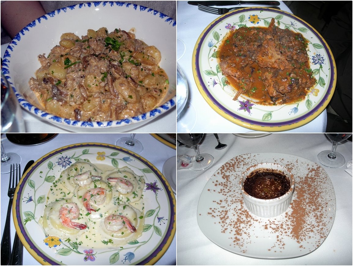 The food was amazingly good! Renee had the gnocchi with mushroom, ricotta, and sausage dish which was quite delicious. Tony devoured the bone in rabbit with onions, black olives, and tomatoes. I thoroughly enjoyed the ravioli of the day: shrimp and ricotta in a cream sauce topped with grilled shrimp. Yum, yum, yum!