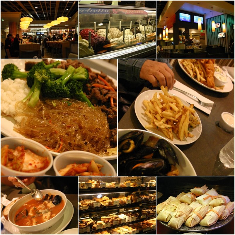 One of the newer things in the city is the Bloomingdales side of the San Francisco Shopping Centre. We had lunch in the Food Emporium there and it was just amazing. I mean, talk about a vast selection of stuff to eat! Mom, Mike, and I got some food from a little seafood restaurant there. Mike had the fish and chips, mom had the seafood stew, and I had the mussels with fries. Linda got the Korean beef dish with some kimchee. It was all delicious and reasonably priced.