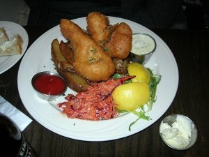 It’s so scary to think that I cleared almost the entire plate. Yeah, all 4’7″ of me. That IS scary. Anyhoo [insert distraction from that insane thought here], Renee got the fish and chips dish. Man, those fishies were huge!