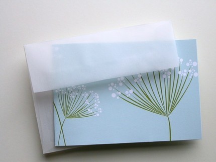 Isn’t this a pretty stationery set? I really like how it shows through the vellum envelope. She’s Boston-based too. Pretty neat-o.
