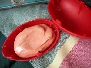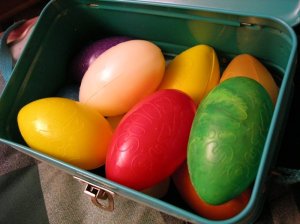 I got us a pair of tickets to see The Shins at the Orpheum Theatre next month and decided to surprise Tony with the news when we went out to dinner on Saturday night. I wanted to put a note inside a plastic egg but of course – like real, chicken made kind of eggs – you can’t ever buy just one plastic egg anywhere. They always come in dozens. So luckily I remembered that I used to collect Silly Putty way back in the day. And I managed to find my stash so that I could “borrow” one of the egg cases for this purpose.