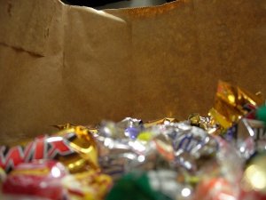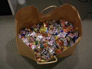 Seriously people, this bag weighs a ton! I don’t think we have to worry about the candybowl going empty for a while.