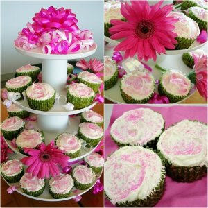 This Sunday is my boss, Elissa’s, birthday and since I’m going to be out of the office on Friday, I decided to surprise her today instead. I got this really cool collapsible tower from AC Moore and decorated it with cupcakes, Gerbera daisies, some curling ribbon, and a bow. She loves the color hot pink so I went with as much of it as I could find! I must say that a bit of my Martha side came out today and I was quite pleased with the way the tower turned out!