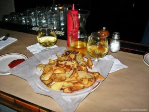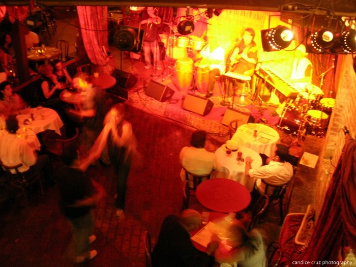 I know I’ve said it in posts before, but we just love the Beehive. I love the stage area, the bar, the atmosphere, and the food. We happened to stroll in on one of their World Salsa Sundays with a band, Cincoson, playiing some kick-ass salsa music on stage.