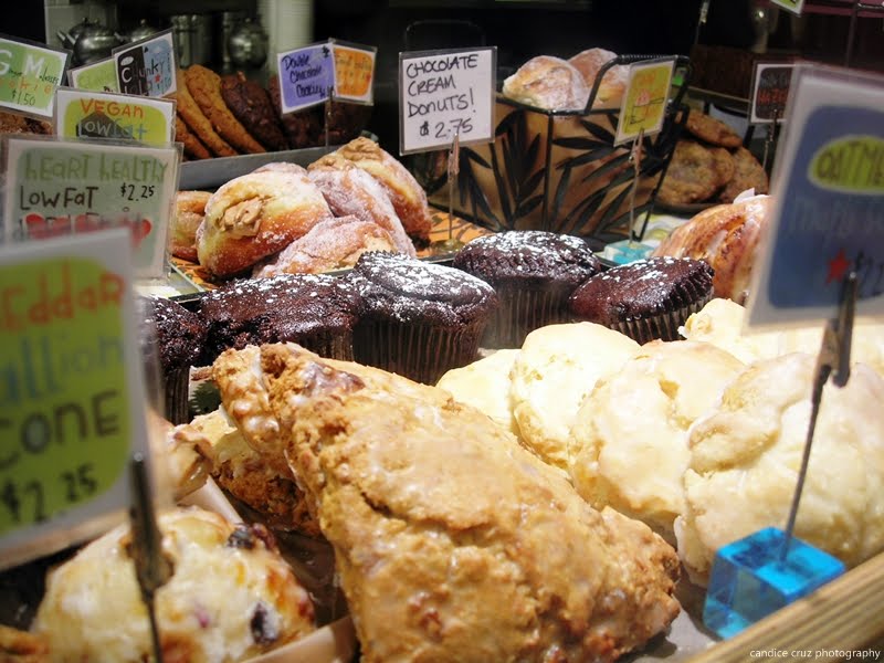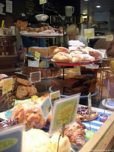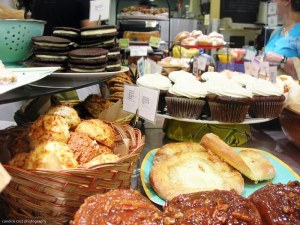 And after finding a parking spot (thank you, parking angel!) we walked into the typically chaotically busy (chaos = customers which included lots of little kids and babies, never the staff!) and filled bakery with hungry bellies. Boy oh boy, we certainly were not disappointed by what we saw (click to see larger images … lots of yummy details!):