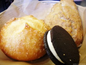 More yummy goodness in this photo. Look at the cream just peeking out of the donuts! Check out the thickness of those brownies!
