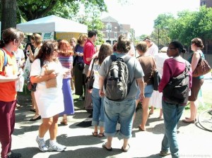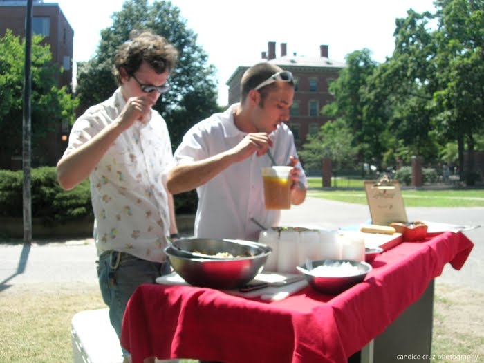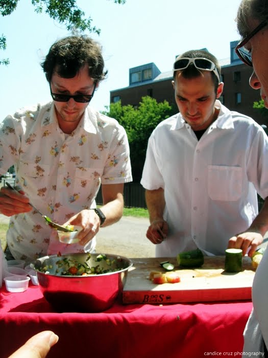 My coworker and I decided to take the 12:00 pm shuttle from our off-site location to the Harvard campus to check out farmers market finds. I had also heard that one of the chefs from Hungry Mother was going to be creating a free food sample during the first hour, so that made for even more of an excuse to get out of the office, stretch our legs, and enjoy the beautiful summer day.