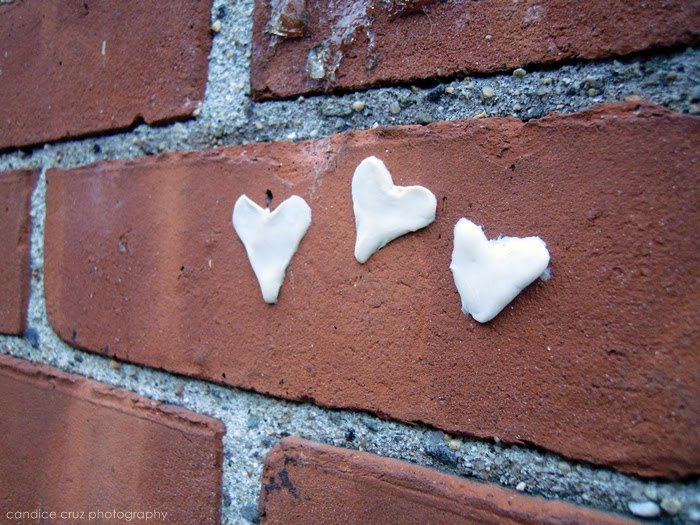 Someone put their gum on a brick wall and took the time to form them into hearts. Interesting.