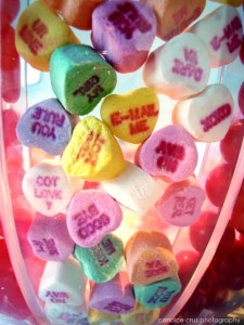 Thanks to Emily for the idea of using (and for supplying!) the conversation hearts.