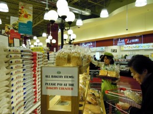 And then we walked in. And wow. So much to take in. A bakery on the right. A wall of rice bags. A gigantic produce section. A food court where they have Korean, Japanese, Thai food and more to choose from.