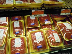 There was a wall of kimchee. A wall of those cool little side dishes that you get at a Korean restaurant. Tons of fresh seafood options. And lots of meat!