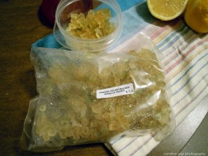 I ended up making a test batch of these before we had a baking contest at work and I had the hardest time figuring out what to use as a topping (or if I even needed one – these are delicious on their own). I decided to go with a lemon and plum glaze with some crystallized ginger on top. I scored this huge bag of ginger from Christina’s for less than $4!