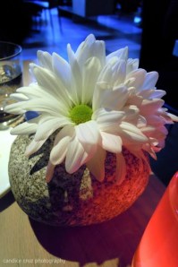 The first thing that we both noticed and commented on after being seated inside the restaurant was the decor, more specifically the use of wood on the walls and on the ceiling. The atmosphere and ambience in Market is relaxed yet chic and refined. The decor was simple yet interesting at the same time. They had these cool rock vases holding daisies on each table. The rocks are real, believe it or not, with a hole drilled into them so they can hold water and the flowers.
