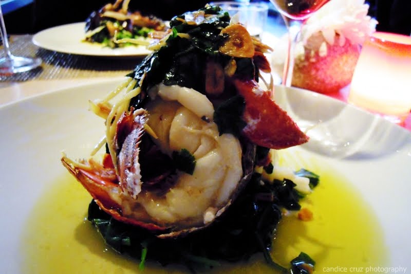 I had the lobster entree for dinner, and wow! Talk about a fantastic plate! I usually don’t order lobster at a restaurant because, let’s face it, it’s usually quite boring if it’s served with just butter. This was served with butter fried garlic over sauteed spinach and some julienned ginger. It normally has dried chili on it but they were omitted due to my food allergies. I couldn’t get over how beautiful the presentation of the dish was for at least a couple of minutes, and then I couldn’t stop talking about how delicious it was.