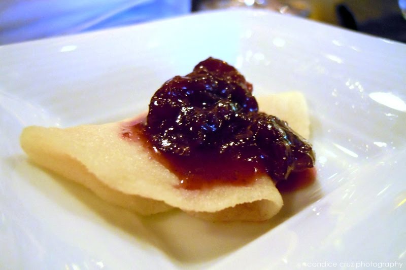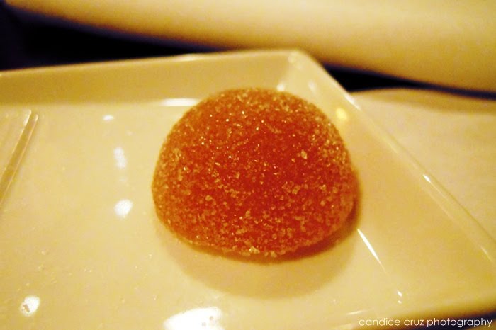 And as if that wasn’t enough, the bartender gave us these little gumdrop-looking treats when we asked for the check. They were plum flavored and oh-so-good! I had a glass of the 2008 Muscat de Beaumes-de-Venise, Cotes du Rhone and they went together quite nicely.