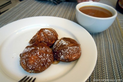 Since I used the classic ebelskiver batter recipe and didn’t use a filling, I put more batter in each well. Flipping them takes practice – that’s for sure! – since the liquid isn’t completely set when you go to flip them over. I decided to put some small pieces of chopped dark chocolate in the middle of some of them toward the end of the batch.
