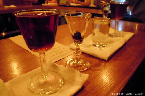 We had about an hour to kill after dinner before heading over to the red velvet event mentioned in yesterday’s post, so we made our way downstairs to Drink. It was pretty much full around 7 pm which is great for a Tuesday night, but we did manage to find two seats at the bar. The bartender, Brynn, was super nice and seemed to really love her job (don’t you just love that vibe?!). I got my favorite cocktail there, the Green Point, which all I can remember of the list of ingredients in it is the yellow chartreuse and whiskey (I think she said whiskey). It’s quite potent to be honest, but it tastes better as you work your way through it. My husband went with the Fort Point cocktail which was very similar to the Green Point but I can’t remember what she said the difference was. Both come with a liqueur soaked cherry on the side. A great way to warm up from the inside on an icy cold, wind-howling type of winter night, and it prepared us for the walk to the bakery.