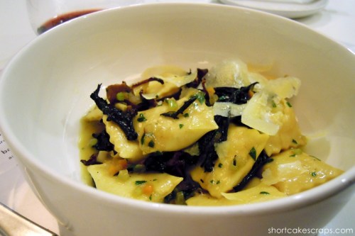 I think my husband was super adventurous that night and got something out of the ordinary (i.e. not red sauce, and not just spaghetti), the smoked potato agnolotti dish which was served with two types of mushrooms (black trumpet and hedge hog) and Monte Veronese cheese. He said that they kind of reminded him of pierogis, and that they were very good (proof: a spotlessly clean bowl).
