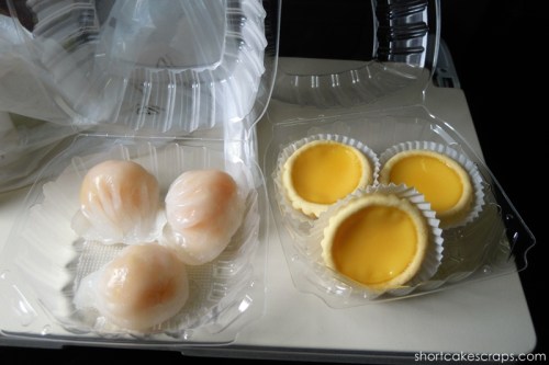 And then! Right next door to Boudin was this Chinese dim sum place. Dim sum?! At an airport?! I was super delighted to see that they had my favorite little egg tarts too. Wow! So I picked up an order of the egg tarts and one of the shrimp dumplings although not realizing that she would give me 3 pieces of each (it was hectic, the line was really long, and I don’t think I could’ve argued “I only want one of each” to the poor girl running the place by herself).