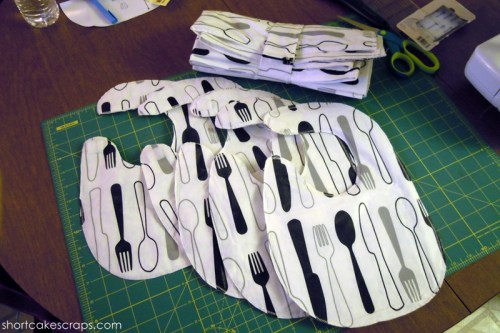 Next time I’ll definitely try making the bibs out of oilcloth and/or the laminated cotton fabric. Stay tuned for the results!