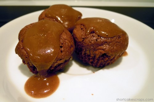 I think they turned out great – the cupcakes were tasty and not too heavy (as the title of “fudge” might imply), and there was just enough zing of pepper in the caramel but it didn’t linger too long. It was also great because I could make the cupcakes all in one bowl and without lugging out the huge (and heavy!) Kitchen Aid mixer.