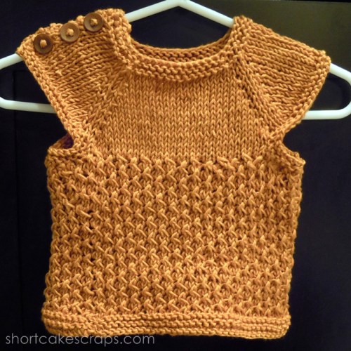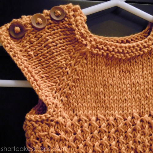 Again, another feature I liked about the pattern was the shoulder with buttons. The “Tummy Warmer” pattern is by Angela Tong and is available here. I’m sure I’m going to whip up at least one (if not ten!) more of these using different yarns and needle sizes (to make larger sizes). Now if I could just figure out how to make this in my size … 😉