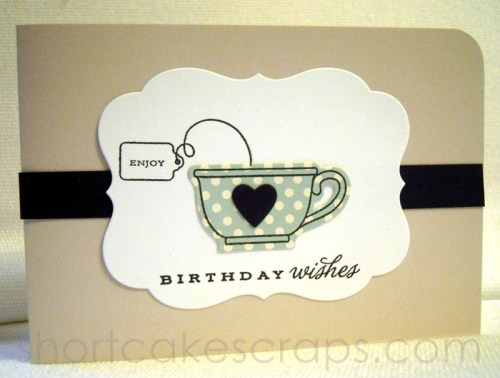 And as you can see I’ve gone with a coffee and tea theme lately – two things that work well to keep me awake and crafting lately. I’m loving the concept of rubber stamps that have cutting dies that go with them; both the tea cup and the coffee cup here are from Papertrey Ink. I’ve got to dig up more from my stamp collection this week so stay tuned for more designs and wish me luck in the crafting mojo department!