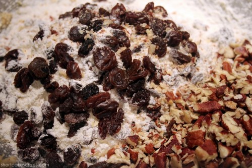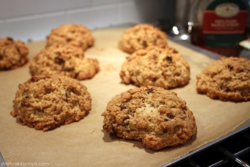 I made one batch using the chopped pecans and one batch without them (because of my nut allergy). And I also used regular raisins instead of golden raisins because I didn’t have any on hand at the time. I also liked dropping them onto the cookie sheet vs. having to pat the dough out and cutting them before baking (less mess! less time!). I like how the outside gets browned and crunchy – a great contrast in texture with the inside of the scone.