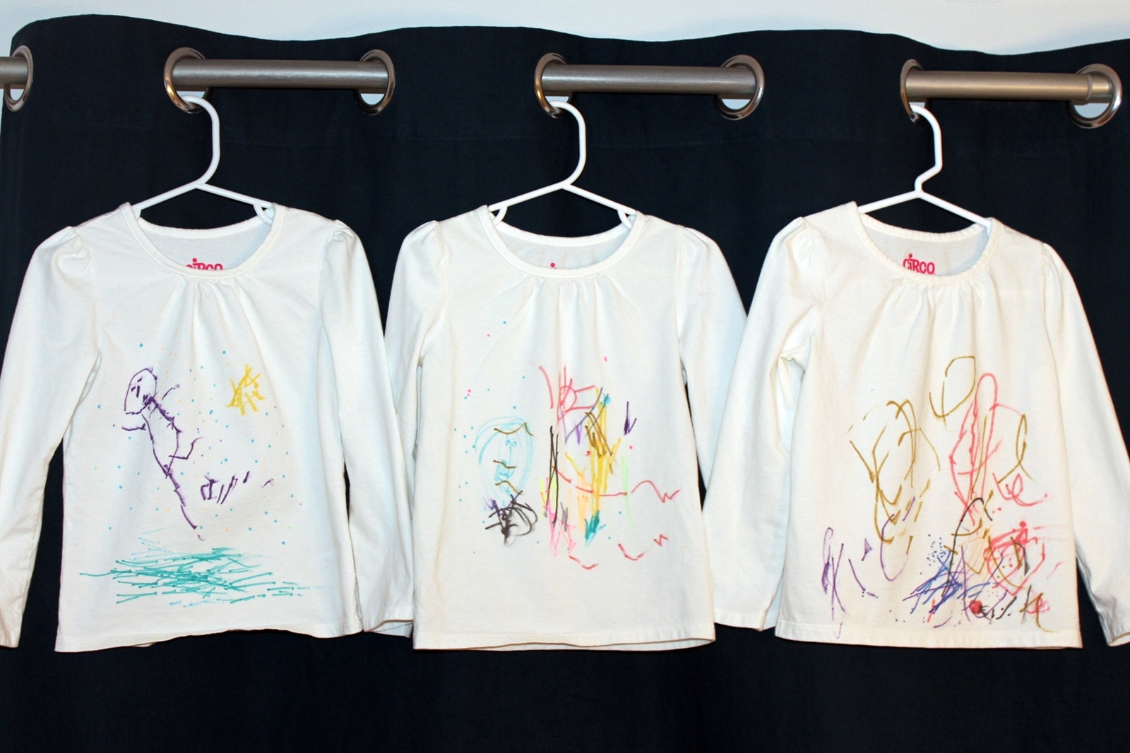 I got this idea after attending a baby shower last year where they encouraged guests to decorate a onesie for the mother-to-be. The girls loved the creative freedom to be able to doodle whatever they wanted to on their own shirt and bag. It was also nice to have an activity where the adults could participate too.