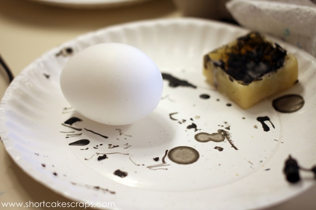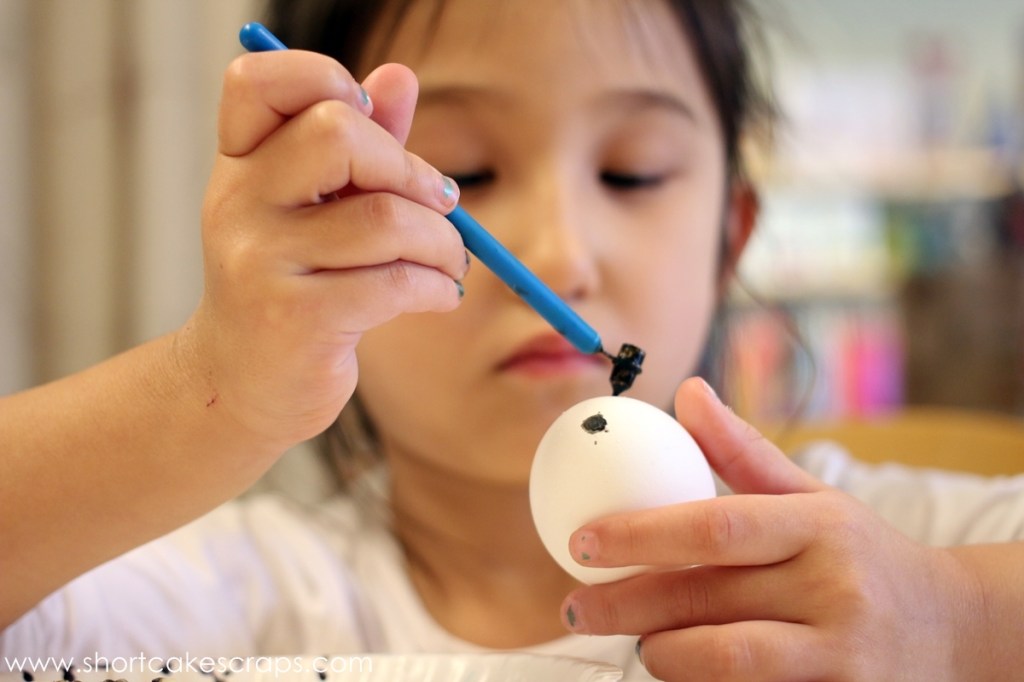 So this was an important factor when deciding between a brown or white egg because the first set of lines or designs that are drawn on the egg would be brown or white. E and I both went for white eggs.