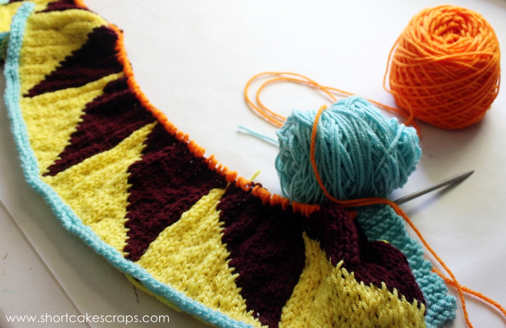 When I first began planning my design, I was still really into doing triangles (like this hat project) so I made large ones that were 20×20 stitches. My finished piece had to be 20″x48″ which was – I’ll be honest! – way more work than I anticipated!