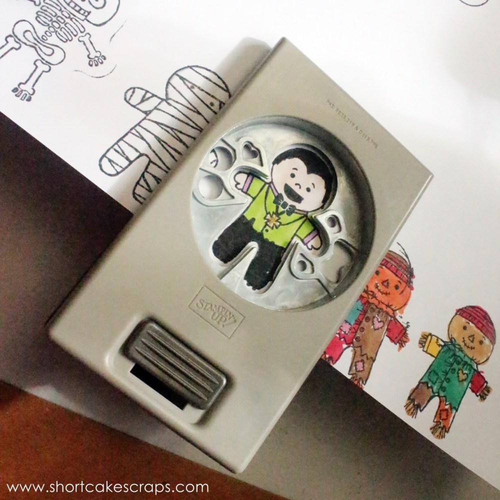 There is a great Halloween Stampin’ Up! stamp set that she loves to use this time of the year because it has a coordinating punch tool that allows her to cut out the stamped images (and in her case, to play with).