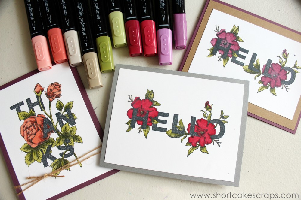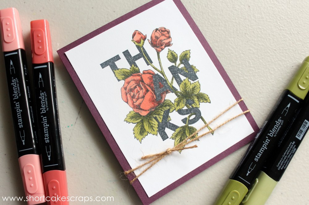 I kind of took prompts from the stamped image and used the darker shade wherever it was shaded in the stamped image, such as in the base of the rose image and leaves here. There are some great tutorial videos on the Stampin’ Up! YouTube channel that show how to really take color blending to a new level with stamping so be sure to check those out. I like how there are two sizes of tips to use on each marker depending on the size of the area you’re trying to color in. And I like how there’s a wide variety of colors to choose from in the set. I’m sure I’ll be using these when crafting holiday cards within the next couple of weeks!