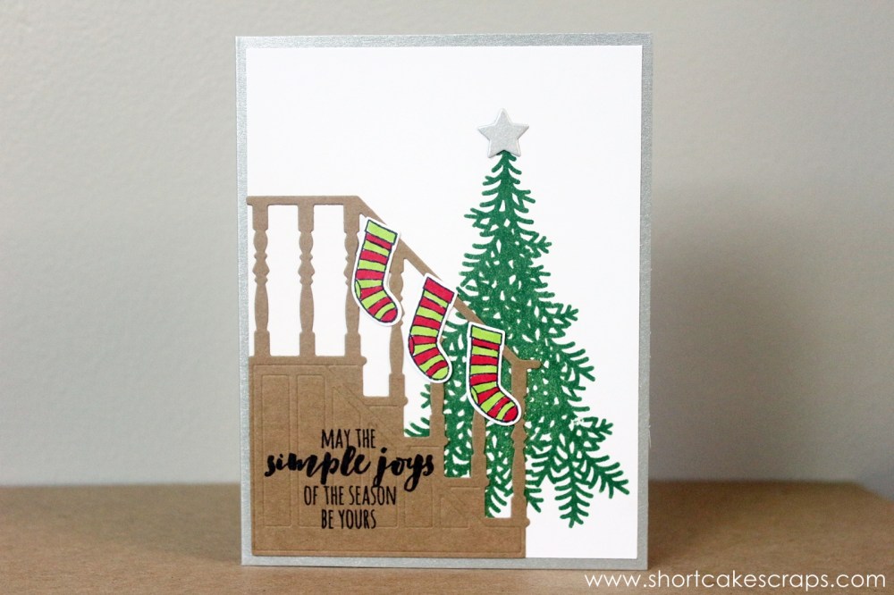 There’s also a cute stairway die cut included in the set that has an embossed detail along the base. I can see using this in other non-Christmas related projects. For this example I used it along with the stockings die cut and used the tree in the background.